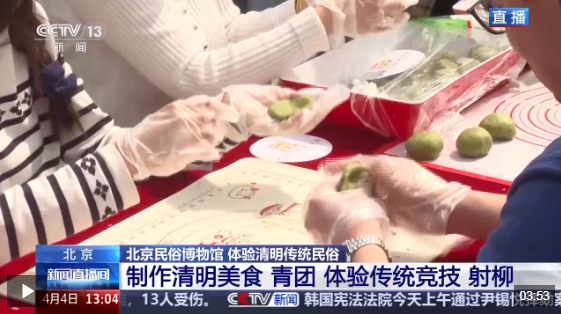北京民俗博物馆东岳庙的“忆满京城·情思华夏”活动现场既有传统竞技的热闹,也有春草清香的雅趣。现场游客正在体验包青团,以艾草和糯米为原料的青团正是时令美食。
