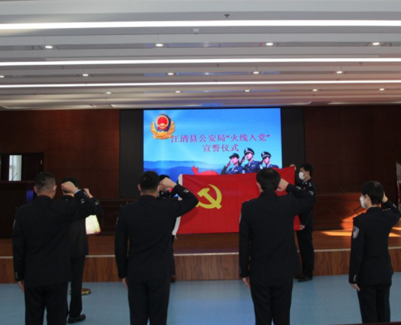 身后是防控第一线,面前是鲜红的党旗,在汪清县公安局“火线入党”仪式上,曹俊光荣的成为一名预备党员。