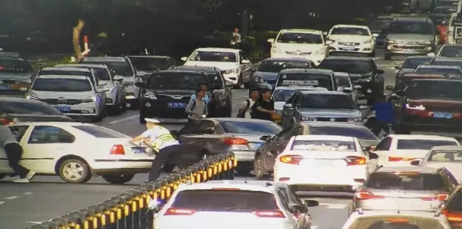 8月28日8时许,正值交通高峰时段,在解放大路岳阳街交会处,一辆白色轿车因故障抛锚无法行驶,堵在路中央,如不及时处置,极易导致二次事故和交通堵塞。