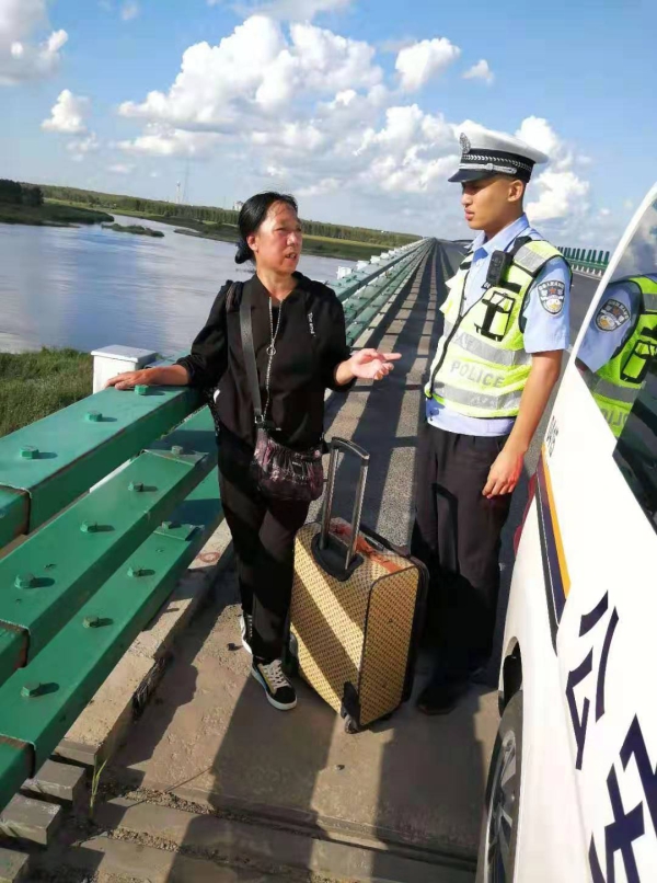 8月27日15时许,吉林高速公安松原分局四大队巡逻民警巡逻至大广高速公路192公里处时,发现路肩有一女子拉着行李箱沿高速公路行走,民警立即打开喇叭语音示意该女子停下,在确保安全的前提下将该女子带至警车询问情况。