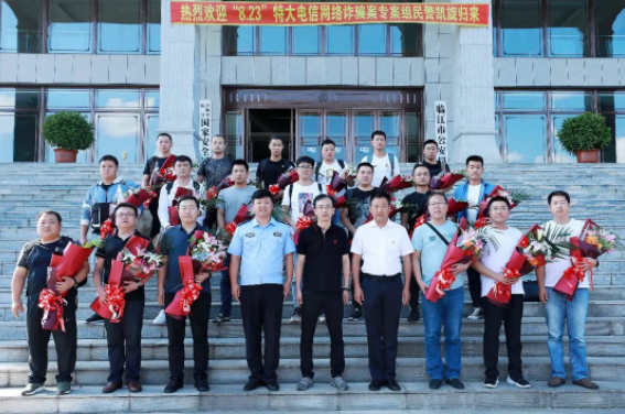 9月1日下午,临江市公安局举行 “8.23”特大电信网络诈骗专案组民警凯旋欢迎仪式。