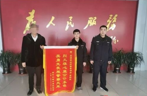 近日,老人家属来到净月分局玉潭派出所将一面精心准备的锦旗交到民警胡南手中,以表达对救援民警、辅警的感激之情。