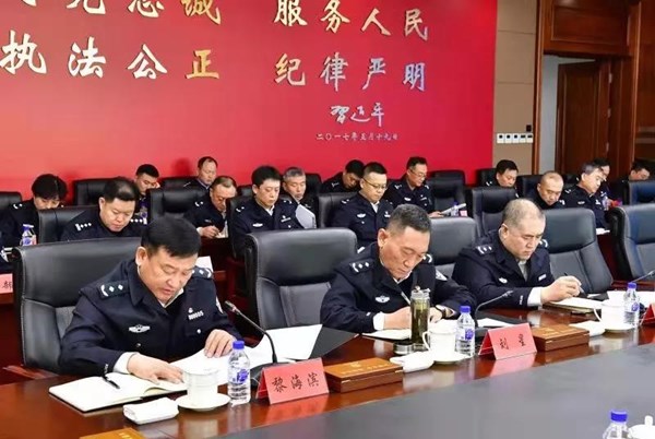 刘金波指出,党的十九届四中全会是一次具有开创性、里程碑意义的重要会议,习近平总书记的重要讲话,深刻总结了国内外正反两方面经验,阐述了中国特色社会主义道路自信、理论自信、制度自信、文化自信的根本依据,明确了坚持和完善中国特色社会主义制度、推进国家治理体系和治理能力现代化的总体目标和时间表。巴音朝鲁书记在省委常委扩大会议上的讲话,就进一步做好贯彻落实工作进行了具体安排部署。全省公安机关要把学习贯彻党的十九届四中全会精神作为当前和今后一个时期的重要政治任务,逐级开展传达学习活动,确保每一个基层所队、每一名公安民警都学习到位、入脑入心,切实把思想和行动统一到习近平总书记重要讲话精神上来,统一到省委的部署要求上来,履行好党和人民赋予的新时代职责使命。