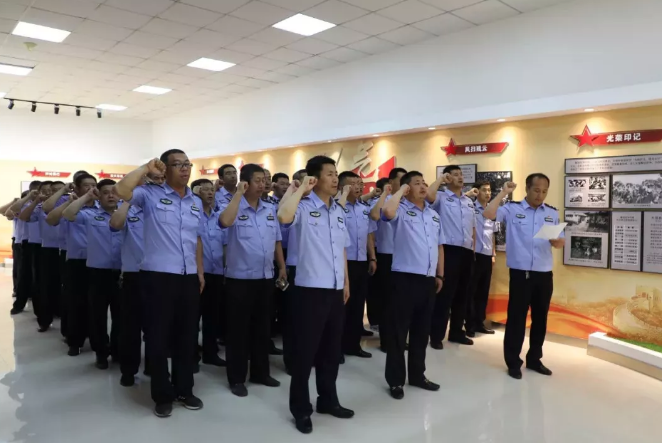 参观结束后,全体党员面对鲜艳的党旗,庄严地举起右手,重温了入党誓词,再次接受心灵的洗礼,进一步坚定了理想信念。大家纷纷表示决不辜负党和人民的培养和期望,发扬党的优良传统,牢记全心全意为人民服务的宗旨,充分发挥党员的先锋模范作用,廉洁自律,立足岗位,勤奋工作,积极投身到公安事业的发展中去更好地为人民服务。