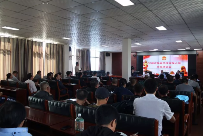 为进一步强化辽源市校园保安职业法律意识、责任意识及风险防范意识,提升校园治安突发事件的处置能力和水平,增强校园保安的安全专业素养和技能素质,辽源市教育局联合辽源市公安局开展了“共织教育防护网络,联手打造平安校园”活动。