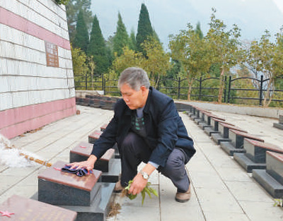 王启荣为烈士擦墓碑。凌箐璐摄