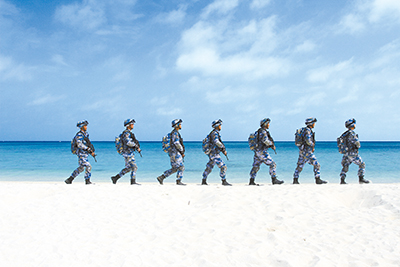 上图:中建岛守备营官兵环岛巡逻。蔡盛秋摄