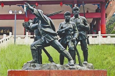 在两河口会议纪念馆里,有一座高大的毛泽东塑像,背靠青山,目光坚定。