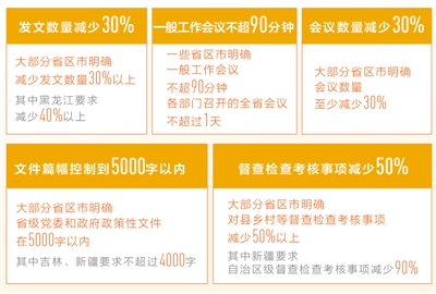 在减少会议数量方面,新疆、湖南、广东等省份规定,开到县级以下的会议减少30%—50%。