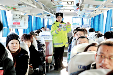 在全市各客运站,民警向乘客发放交通安全宣传单,并讲解安全乘车注意事项。