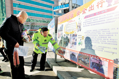 以交通安全、文明出行、倡议书等宣传形式开展街头宣传,促使文明交通深入人心。