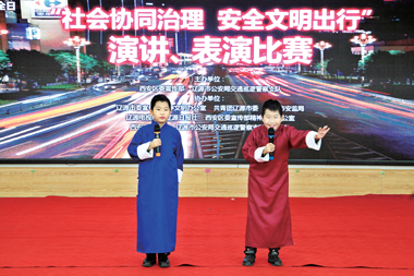 由市交巡警支队联合市委宣传部精神文明办举办的“社会协同治理、安全文明出行”演讲、表演比赛,让青少年在表演中表达对交通安全活动的理解和感受。