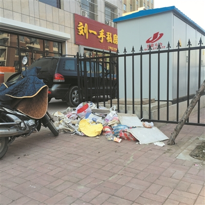 铁西区宏泰小区北侧人行步道乱扔垃圾。
