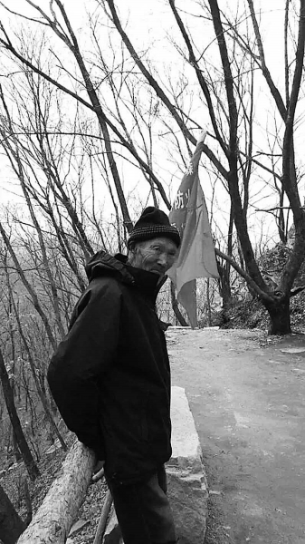 这位老人叫刘江,筑的路位于上营森林经营局局址东边的砬子山上,石阶从半山腰开始,共计107级石阶,已通达山顶。老人今年79岁了,看起来精神矍铄,近1.8米的个头。当记者看着老人时,注意到老人一身淳朴的打扮,戴着一顶黑色灰边的帽子,弯着腰驼着背,正用扫帚清扫垃圾,再拿起铁锹给小树培土,用抹布清理石桌上的尘土,旁边那面防火的旗帜随风飘动,让节日的山巅不再寂寞。记者便以游人的身份和他唠起家常。老人说筑路时,并没有想得太多,只是想让家乡人登山方便。
