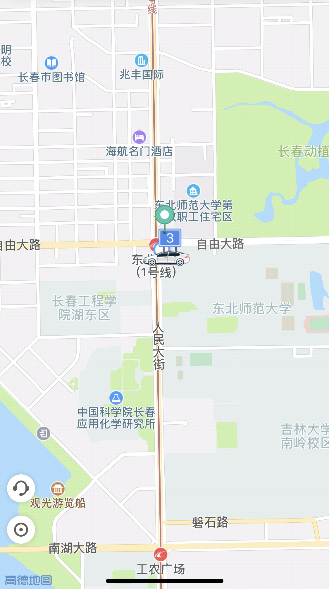 第一步,定位你周围的可用车辆。记者选择的取车网点是长春市自由大路, 打开神州租车APP,定位上立刻显示这个位置有3辆车。