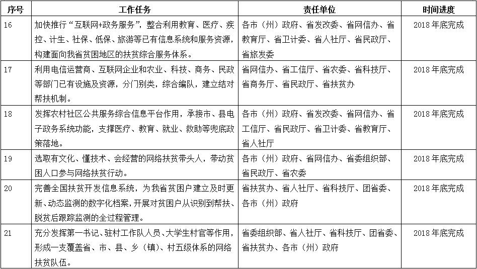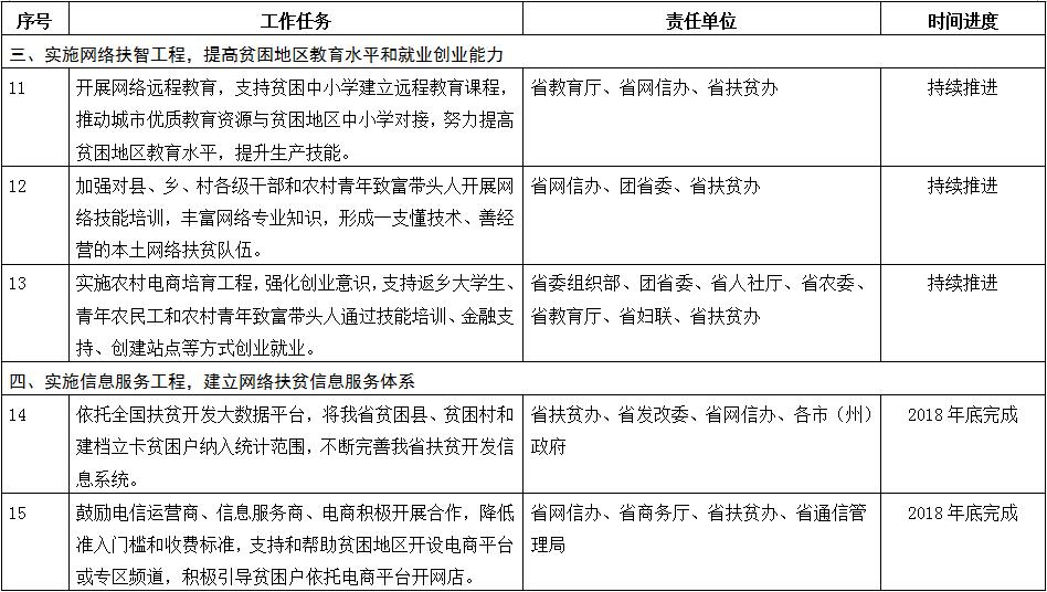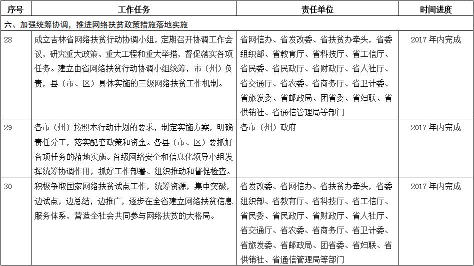 附件:吉林省网络扶贫重点任务分工及时间进度