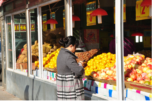 如今已经接近冬日的水果摊 (摄于2011年10月)