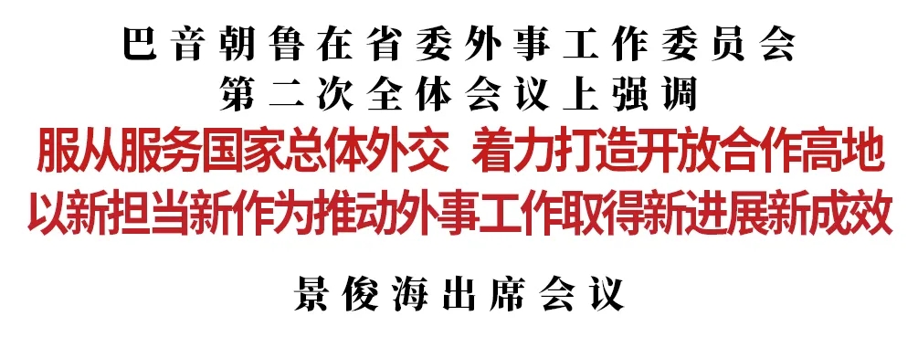 巴音朝鲁要求,地方外事工作是国家对外工作的重要组成部分,必须全面加强党对外事工作的领导,夯实地方外事工作的基础,推动提高地方外事工作实效。省委外事工作委员会要加强统筹协调,形成省委抓总、各有侧重、相互配合的对外工作大协同局面,各地各部门要发挥好党委的统筹职责,形成上下联动、步调一致的工作格局。要建立健全我省外事领域制度体系,加强研究谋划和顶层设计,形成架构清晰的外事工作体系。要突出政治标准,注重专业能力,努力建设一支忠于党、忠于国家、忠于人民,政治坚定、业务精湛、作风过硬、纪律严明的对外工作队伍。