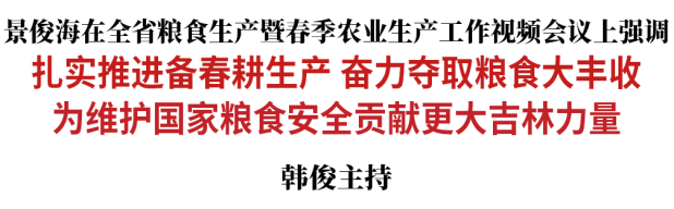 景俊海强调,当前春耕在即,必须做好准备,确保不误农时。一要保面积,深入实施“藏粮于地、藏粮于技”战略,夯实粮食生产基础,率先开展东北平原国家粮食安全产业带建设,启动“黑土粮仓”科技会战,切实把黑土地这一“耕地中的大熊猫”保护好、开发好、利用好。二要优结构,大力发展玉米、水稻等高产作物种植,探索开展完全成本保险或收入保险试点,加大高产高效、优质高抗品种的推广力度,鼓励引导扩大大豆等战略性品种种植面积,培育壮大“吉字号”农产品品牌,推动由大粮仓变成绿色粮仓、绿色菜园、绿色厨房。三要抓技术,集成应用农业先进实用技术,大力推广“梨树模式”,做好播前种子处理,成立专门技术指导服务队伍,以手册、短视频等形式传播推广新技术,确保农技人员直接到户、技术要领直接到人、良种良法直接到田。四要保菜篮,统筹做好副食品稳产保供,提高蔬菜绿色生产水平,持续抓好设施蔬菜、黑木耳、中药材、畜禽养殖等产业,组织做好产销对接、商超对接。五要强保障,提前做好应对自然灾害准备,深入开展全程机械化新型农业经营主体农机装备建设,精心组织化肥、农药、农膜等农资商品采购调运,加大农资市场执法监管力度,备足备好优质良种,千方百计做好春耕用水用电、运输保障等工作,严格管控秸秆露天焚烧。六要落责任,认真落实强农惠农富农政策,加大对产粮大县支持力度,引导金融机构加强信贷资金支持,强化粮食安全责任制考核,凝聚春季农业生产强大合力。