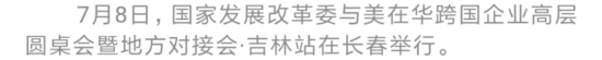 今天(7月8日),国家发展改革委与美在华跨国企业高层圆桌会暨地方对接会·吉林站在长春举行。国家发展改革委副主任宁吉喆到会致辞并作总结发言。省委书记景俊海致辞。省委副书记、省长韩俊作省情推介。