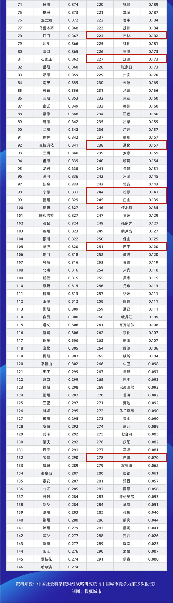 资料据中国经营报、搜狐城市、中国社会科学院财经战略研究院《中国城市竞争力第19次报告》,中国吉林网整合