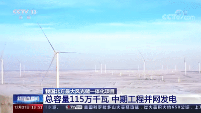 2021年12月30日,中国北方最大风光储一体化项目中的大唐吉林向阳二期600MW风电项目并网发电。