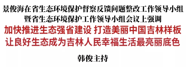 韩俊在主持时强调,要全面贯彻习近平生态文明思想,深入打好污染防治攻坚战,切实把生态强省建设各项任务抓细抓实抓出成效,推动生态环境质量持续改善,为建设美丽中国打造吉林样板。要切实做好中央生态环境保护督察反馈问题整改,落实整改责任,加强督查,严格追责问责,强化信息公开,推动问题全部整改到位、按时限销号清零。要举一反三,深入开展重点区域、重点领域、重点行业日常检查,健全长效机制,以实际成效取信于民。