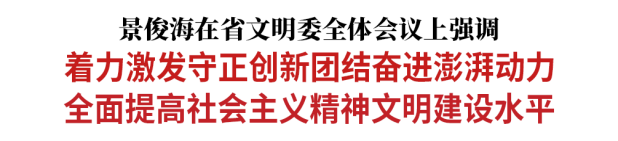 景俊海强调,高质量推进精神文明建设,事关振兴发展大局。一要在思想引领上下功夫、见实效,着力抓好党员领导干部的理论武装、面向全社会的理论宣传、广大青少年的理论学习,引导广大干部群众深学笃信习近平新时代中国特色社会主义思想,增强“四个意识”、坚定“四个自信”,坚决拥护“两个确立”、坚决做到“两个维护”,自觉做党的创新理论的坚定信仰者、积极传播者、忠实实践者。二要在文明培育上下功夫、见实效,巩固拓展党史学习教育成果,深入实施公民道德建设工程,大力培养文明行为习惯、倡导健康生活方式,持续提升网络文明建设水平,努力把传承中华文化、赓续红色血脉、培育文明风尚贯通起来,进一步激发广大干部群众爱党爱国爱社会主义的热情。三要在文明创建上下功夫、见实效,突出营商环境建设等重点内容,不断强化思想政治引领、政策激励推动、标准完善集成,促进创建工作制度化、规范化、科学化,进一步提升文明城市、文明村镇、文明单位、文明家庭、文明校园创建质量成色。四要在文明实践上下功夫、见实效,拓展新时代文明实践中心建设,确保实现有场所、有队伍、有活动、有项目、有机制“五有”标准全覆盖;持续丰富内容供给,打造各类实践项目;深化志愿服务关爱行动,健全完善服务制度机制和工作体系,不断增强志愿服务丰富性、精准性。省文明委成员单位要各司其职、各负其责,形成推动精神文明建设的强大合力。