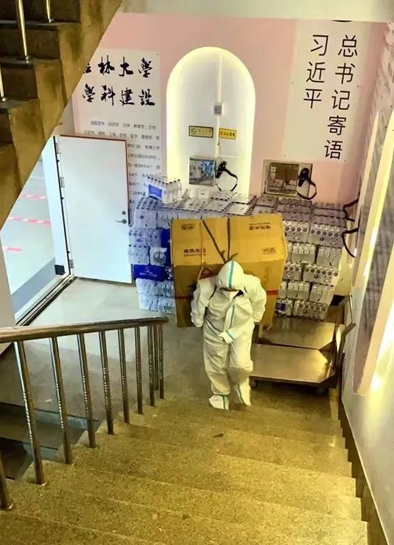 给孩子们做饭的后勤人员,拖着沉重行李的保洁阿姨,唱起动听歌曲的校园寝室,录制Vlog感恩学校的学生……封闭管理以来,吉林大学涌现了无数感人的故事。