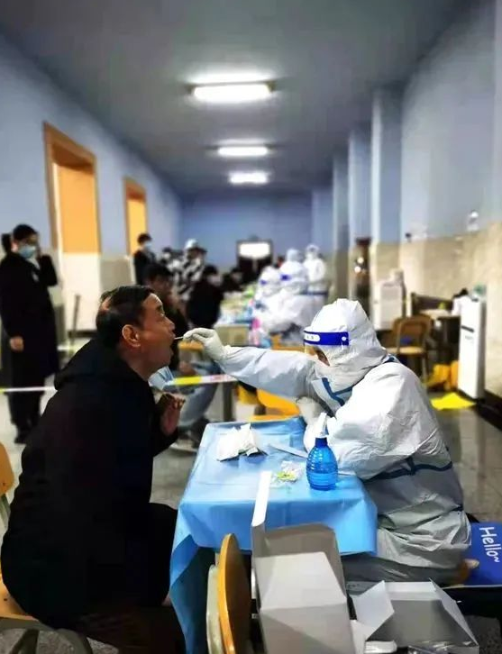 学校校医王喜兵和党院办陶东明克服困难、勇于担当,主动承担学院的核酸检测任务,并将核酸样本转运到指定的P3实验室。
