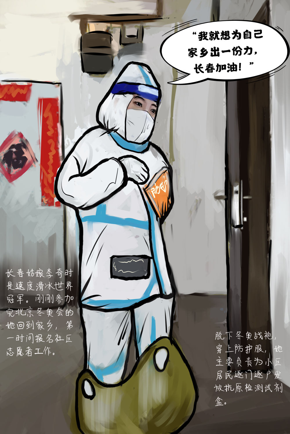 创意手绘海报:“大白”们,加油!