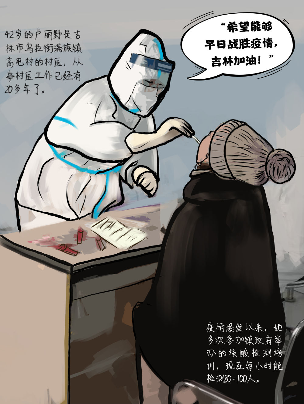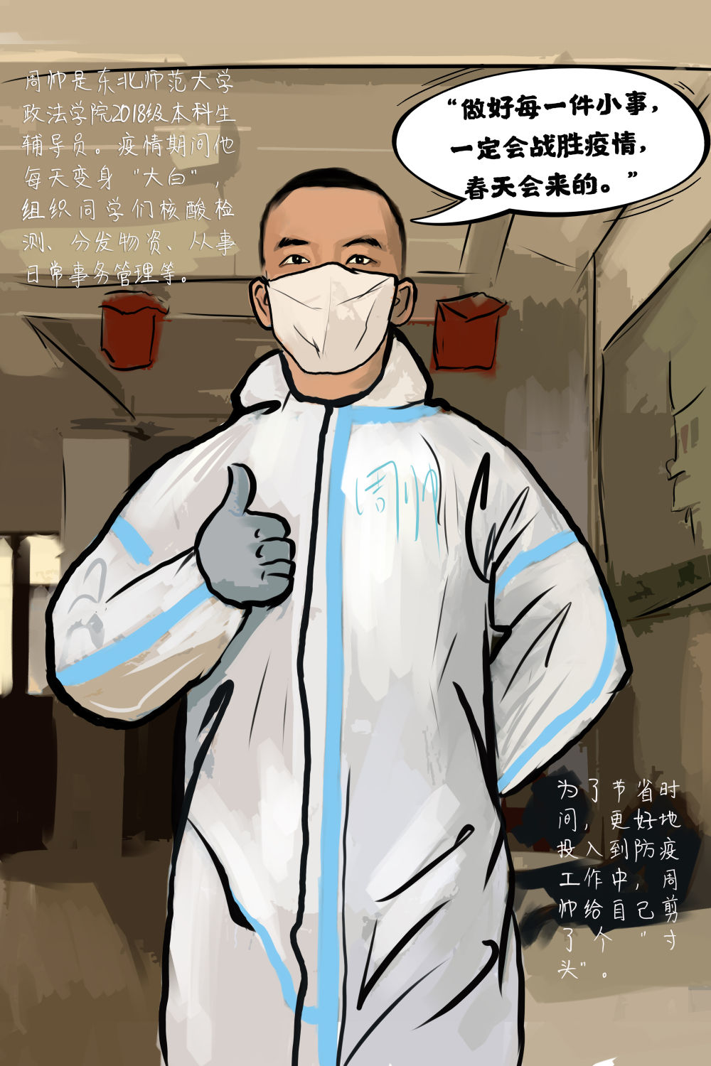 创意手绘海报丨“大白”们,加油!