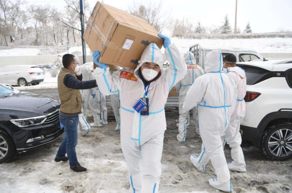 在吉林抗疫的爱心接力中,全国多个省区市以及吉林省内的企事业单位、社会组织、爱心人士纷纷伸出援手,向吉林省捐赠急需的医疗和生活物资。