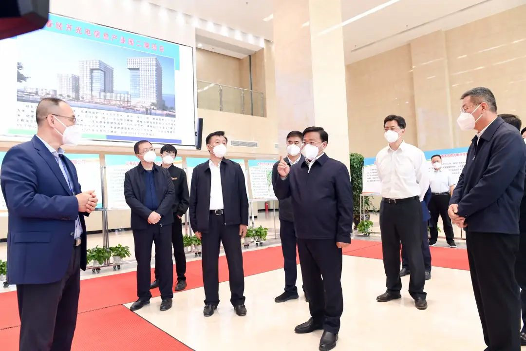 5月20日,省委副书记、省长韩俊到长春市就光电信息产业项目建设调研,现场办公解决问题。他强调,要深入学习贯彻习近平总书记重要讲话重要指示精神,按照省委省政府工作要求,全面实施“一主六双”高质量发展战略,以创新型省份建设为旗帜性抓手,着力发挥科技和人才优势,加强政策和要素保障,加快光电信息产业项目建设,着力建设“长春光谷”,打造千亿级光电信息产业集群,为加快形成多点支撑、多业并举、多元发展的产业发展新格局提供重要支撑。