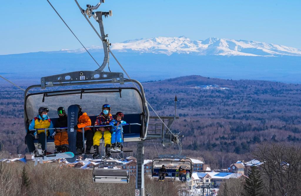 滑雪爱好者在吉林省长白山国际度假区滑雪场乘坐缆车。 新华社记者 许畅 摄