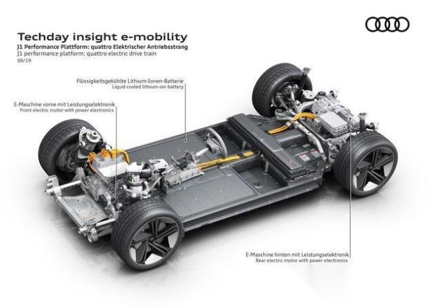 (奥迪PPE电动汽车平台及J1其他现有平台架构示意图)