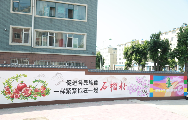 此次墙绘造型美观,色彩艳丽,主题鲜明,内容丰富,营造出了中华民族一家亲的和谐氛围。围绕铸牢中华民族共同体意识主线,通过各民族卡通人物、石榴籽、石榴花、州庆吉祥物龙龙以及民族团结进步宣传标语等元素,充分体现了中华民族优秀传统文化,为各民族群众情感交流、休闲娱乐、拍照打卡提供了一个好去处。