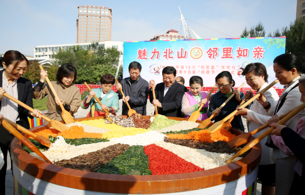 北山街道丹山社区是个多民族聚居区。自2007年始,这里每年都要开展为时半年的“社区邻居节”活动。15年来,每逢邻居节开幕,朝鲜族居民都会穿上民族特色服装,带来亲手制作的拌菜、打糕、米酒;汉族居民带来红烧肉、烧茄子、水饺等食物,其他各族居民也都带来自家拿手好菜,大家互相品尝,载歌载舞,同欢同庆。