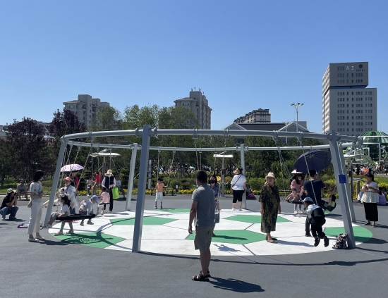 在足球游乐区,球星秋千等多种儿童娱乐设施成为孩子们热衷的项目。“我们就住在附近,周末带女儿出来玩一会儿,还能让孩子交到新朋友。”市民金女士站在一旁,看着女儿坐在秋千上开心的模样,脸上的笑容分外满足。金女士告诉记者,无论运动器械还是场地分区,这座足球公园的设计理念非常符合现在的生活需求,早上过来锻炼,晚上出来散步都比较方便。