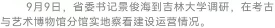 在吉林大学考古与艺术博物馆分馆,景俊海实地察看建设运营情况,强调要进一步加强校地合作,创新展览模式,挖掘讲述文物背后的故事,更好服务教学研究、服务人民群众,不断丰富全社会历史文化滋养。