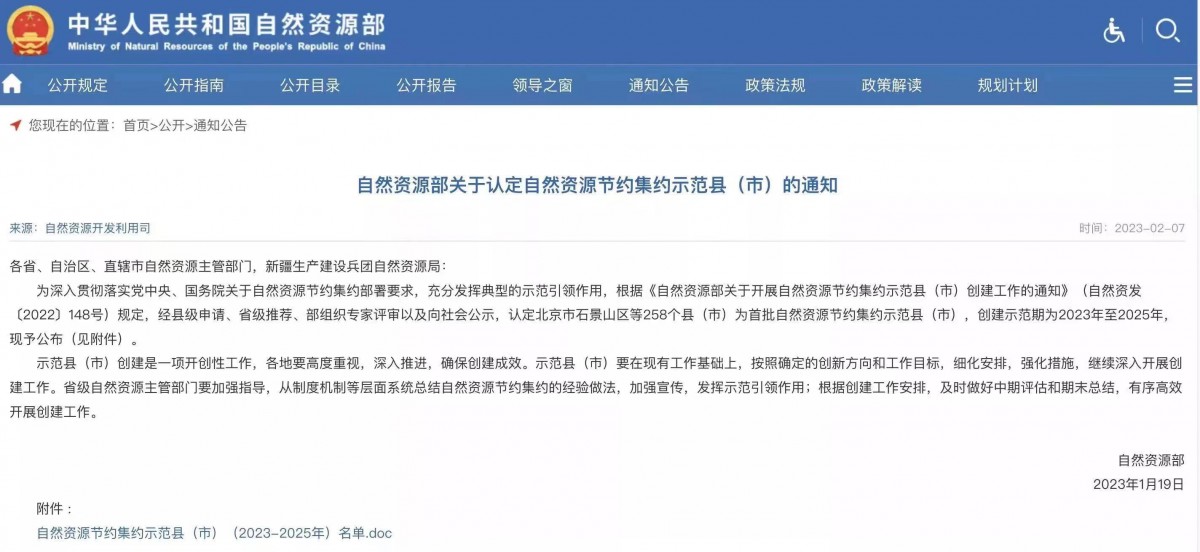 近日,自然资源部发布《关于认定自然资源节约集约示范县(市)的通知》,认定辽源市东丰县等258个县(市)为首批自然资源节约集约示范县(市),创建示范期为2023年至2025年,吉林省4地入选。