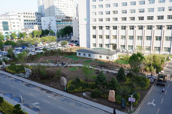 “绿美医院”行动一期(2023年)改造区域为门诊楼前广场绿地、内科楼北侧至行政科前绿地、行政楼北侧、教授楼北侧、生泉楼北侧绿地;二期(2024年)绿化改造区域为科技楼和外科楼北侧至区域诊疗中心前绿地、区域诊疗中心周边及北侧绿地。目前,一期改造工程基本完成,院庭6个区域完成场地平整约10000平米,增加土方量约900立方,栽树563棵,栽种灌木、花卉约164000株。
