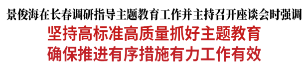 景俊海要求,长春市各级党委(党组)要切实履行主体责任,统筹抓好主题教育与日常工作,统筹做好第一批第二批主题教育衔接联动,加强宣传引导,持续营造良好氛围。省委第一巡回指导组要继续坚持严督实导、以导带督,确保主题教育健康有序开展。