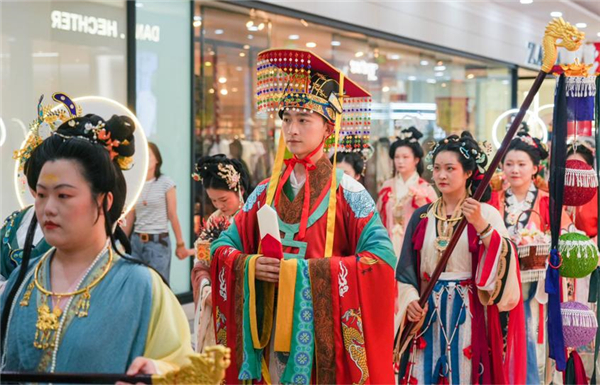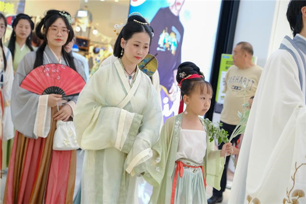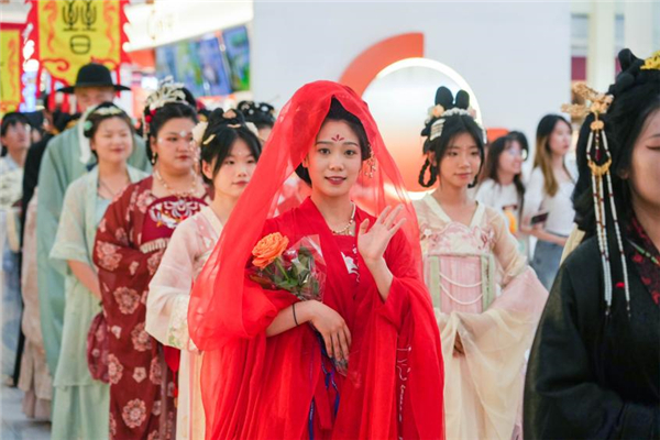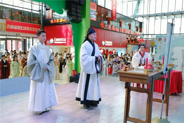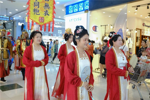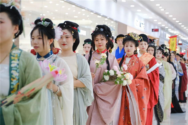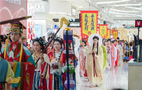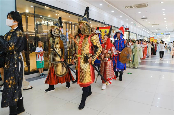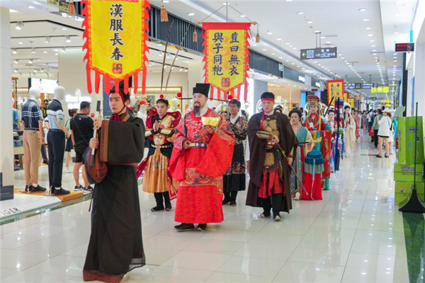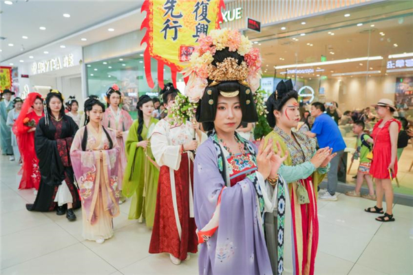 首先进行的是“礼仪之邦”汉服巡游。着汉家衣裳,兴礼仪之邦,两百多名汉服爱好者穿梭在“亚洲第一购物中心”,开启一场声势浩大的汉服盛会,吸引了众多市民围观叫好。