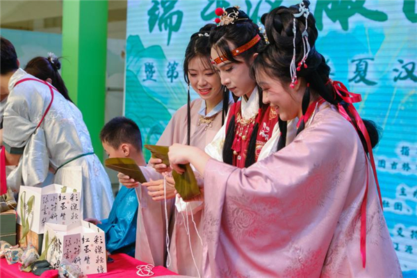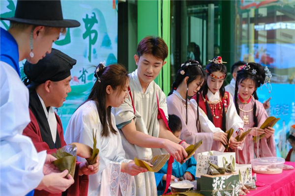 汉服爱好者十四洲高兴地说:“古老的中华民族文化源远流长,在五千年的历史长河中,创造了灿烂的文化。今天我们祭拜爱国诗人屈原,一起包粽子,在浓浓国潮氛围里,度过一个非常有意义的端午假期!”