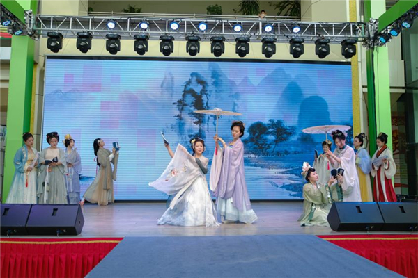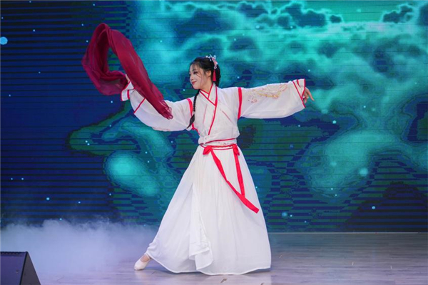 最后,大家一起跳起汉服随机舞蹈《万疆》《礼仪之邦》《中国美》,音乐响起,舞者尽情舞蹈,灵动飘逸,动感十足,释放青春活力。