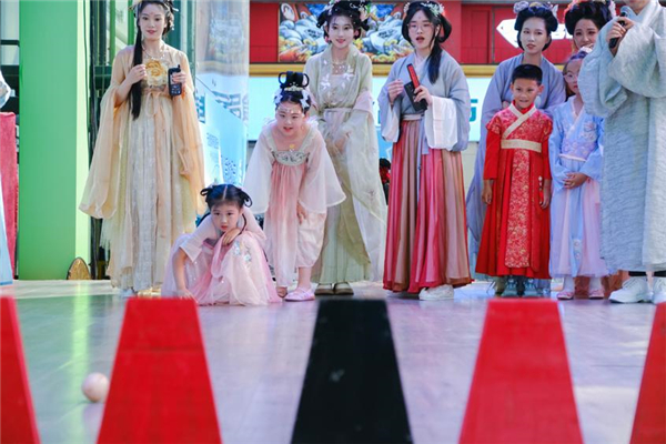 比赛中穿插了国风运动会,让大家感受传统体育的魅力,投壶、木射等传统体育项目,大家都想尝试一下,互相鼓励,默契配合,玩得开心快乐。