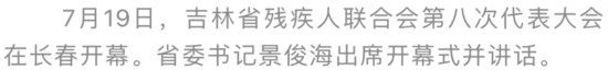 今天(7月19日),吉林省残疾人联合会第八次代表大会在长春开幕。省委书记景俊海出席开幕式并讲话。省委副书记、省长胡玉亭,省政协主席朱国贤出席开幕式。中国残联副理事长张伟致辞。