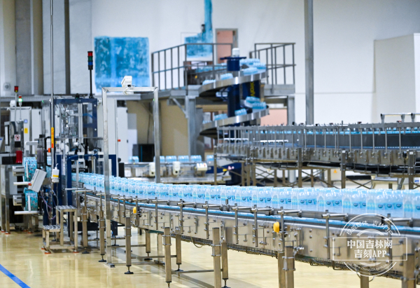 这里,生产线上一瓶瓶矿泉水整齐排列,吹瓶、贴标、喷码、灌装、包装、码垛等流程井然有序,一气呵成,现代化生产场景映入眼帘。