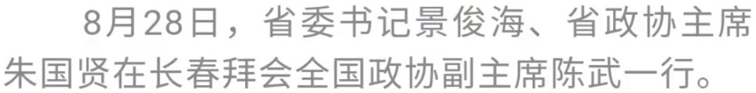 今天(8月28日),省委书记景俊海、省政协主席朱国贤在长春拜会全国政协副主席陈武一行。